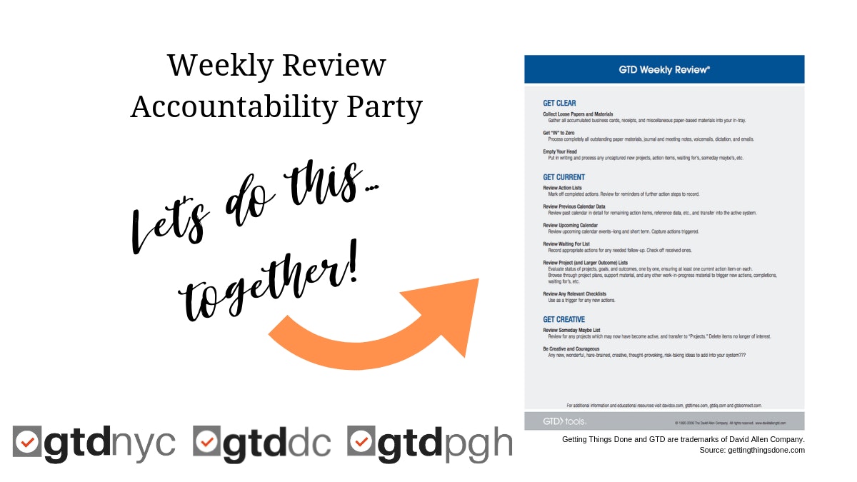 GTDers the world over have had issues with keeping consistent with one of the most powerful aspects of Getting Things Done®, or GTD®, which is the Weekly Review. This was something that I observed for more than a decade in development of Team Accountability Project (which I’m no longer actively managing, but you can check it out and use it if you need/want).
